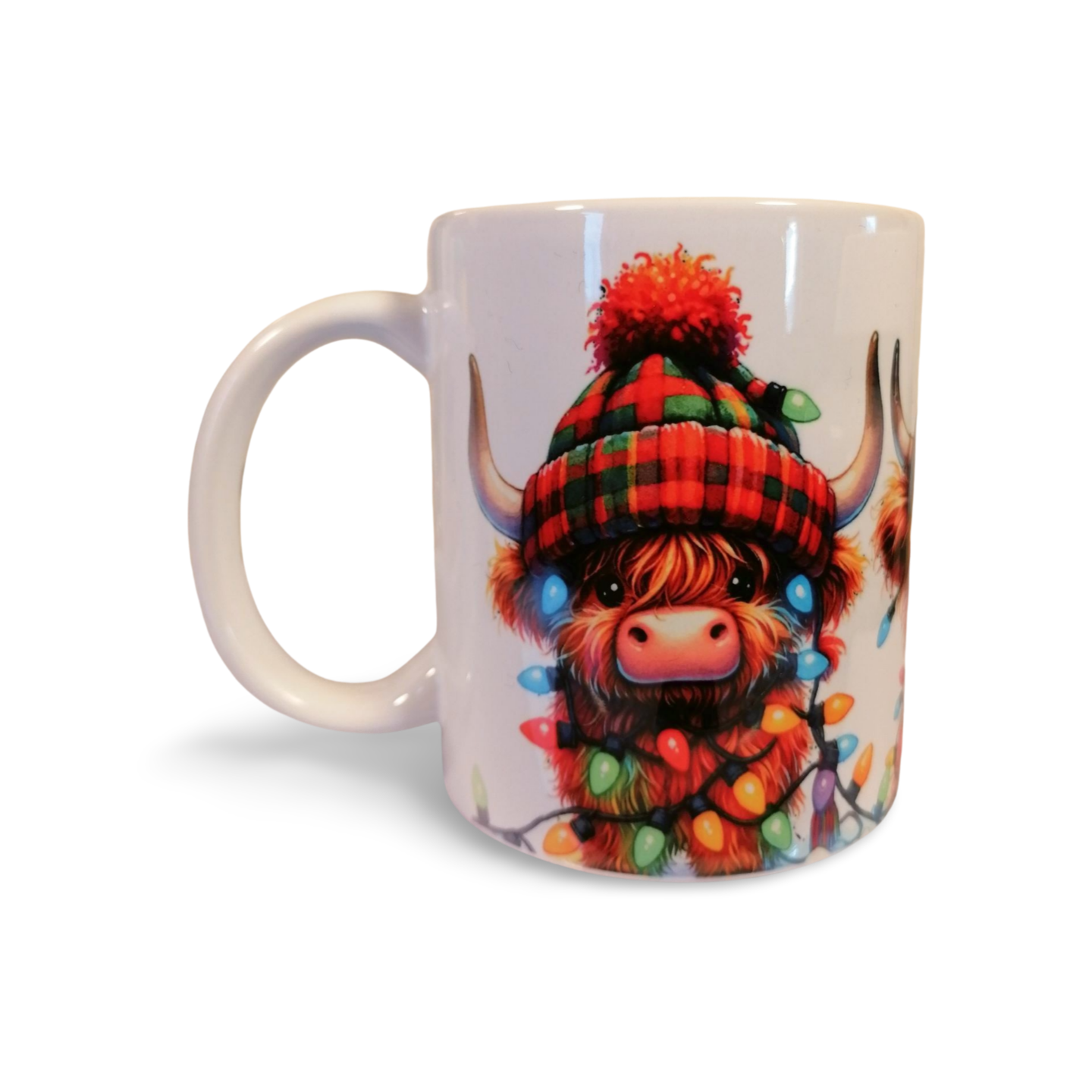 🎄✨ Laissez entrer la magie des fêtes avec notre nouvelle tasse illustrée ! Trois adorables vaches Highland, parées de bonnets d’hiver et de guirlandes lumineuses, apportent une bonne dose de bonne humeur à chaque pause café 🐮💡❤️